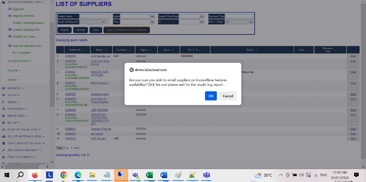 11 Send emails to all Creditors/Suppliers