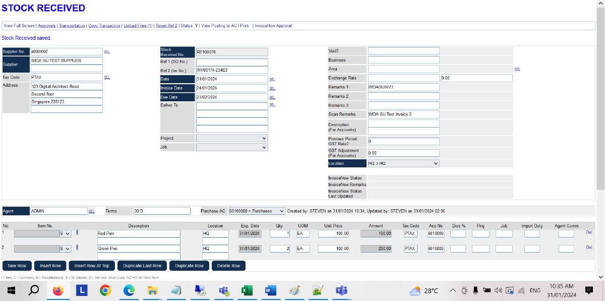 9 Supplier Invoice 1 (Supplier Invoice is recorded as Stock Received in our system for posting to accounts)